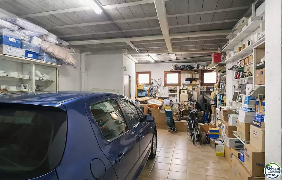 On the ground floor there is a large garage with space for several vehicles and a storage area.