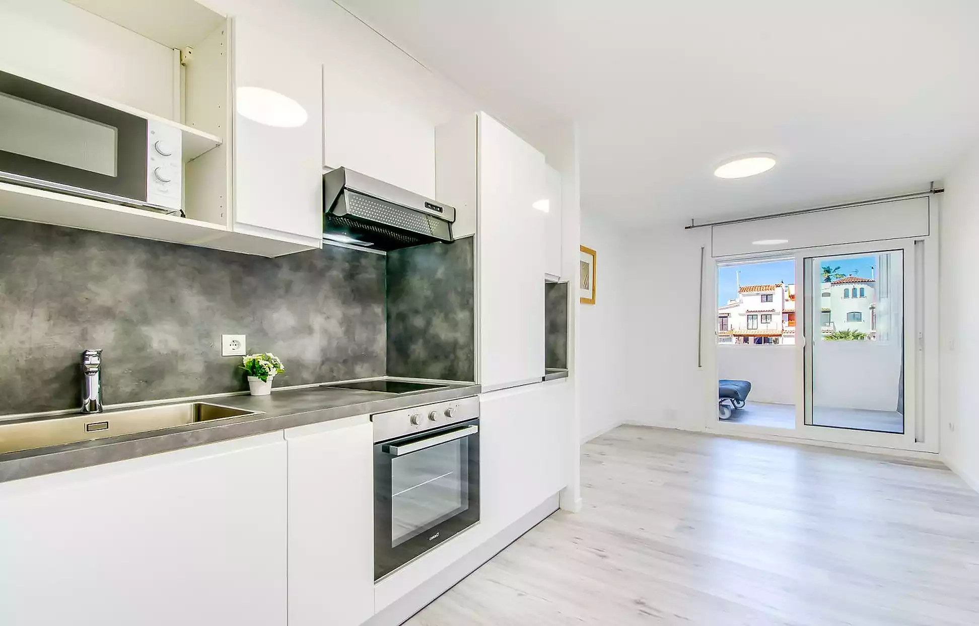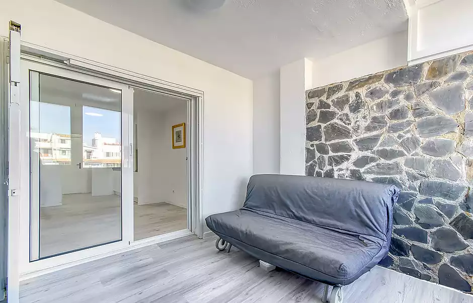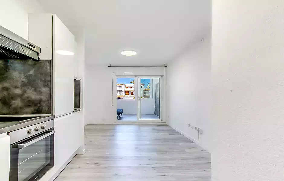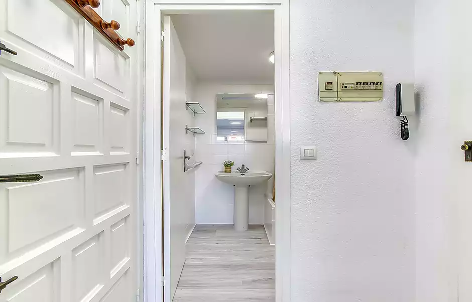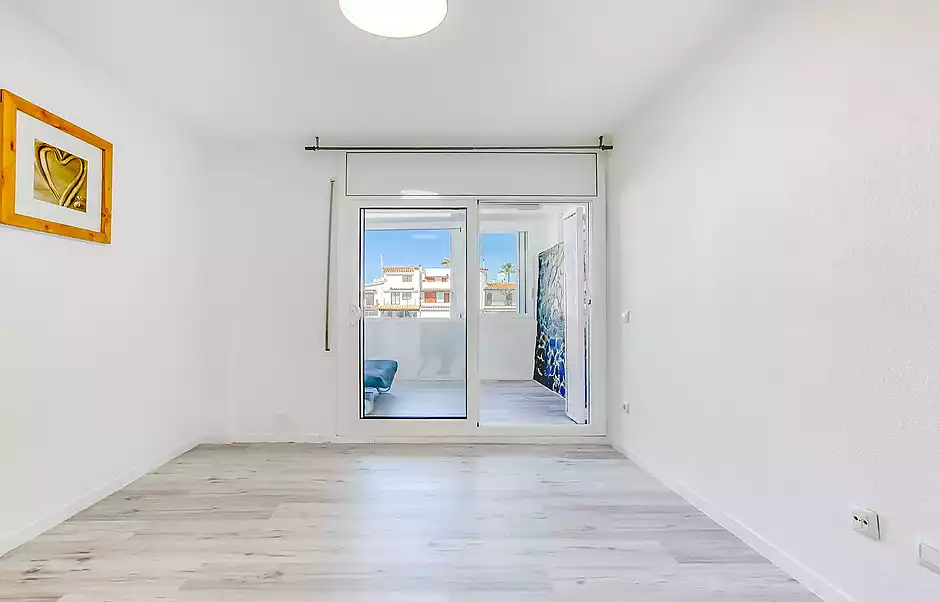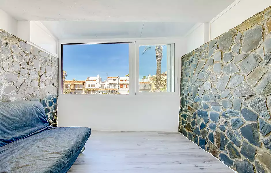 Estudio en venta en Empuriabrava, situado a tan solo 650 metros del mar y justo delante de uno de los canales principales, lo que le proporciona unas agradables vistas y un entorno privilegiado. La vivienda, ubicada en planta baja, cuenta con aproximadamente 30 m² y disfruta de orientación con sol de tardes, aportando luminosidad y confort. Dispone de un baño completo con bañera y una cocina equipada, compacta y de estilo moderno. Además, cuenta con una terraza cerrada que se puede optimizar como salón, zona de estudio o incluso habitación adicional, aportando un extra de espacio muy versátil. Se encuentra semi reformado y se entrega vacío, listo para entrar a vivir o como inversión. No pertenece a gran tenedor. Ideal como segunda residencia o para alquiler vacacional. Cédula: 7CHG01545024001. Certificado energético: G – 392 (consumo) / G – 77 (emisiones).